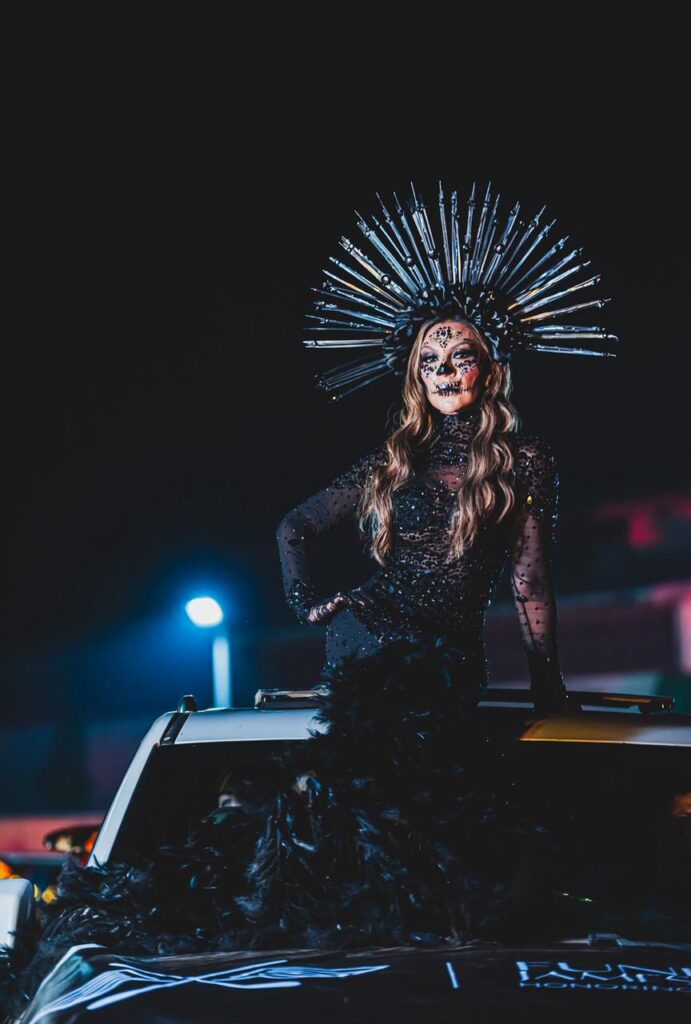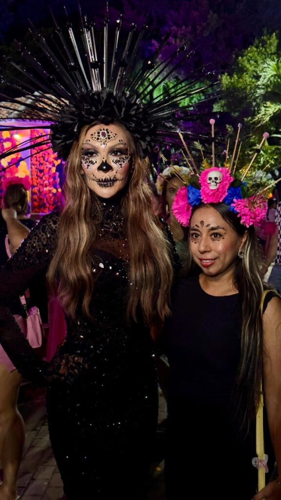 Ataviada con vestuario y maquillaje alusivos a esta emblemática tradición mexicana, Lía Castro recorrió las calles del pintoresco pueblo que por muchos años fue su hogar.