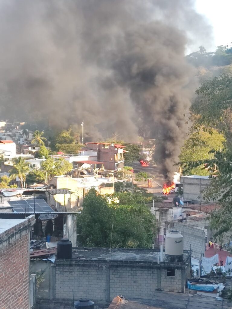 Asimismo, una unidad de transporte de personal fue atravesada e incendiada sobre la carretera Federal 200 con dirección sur, hacia Mismaloya, generando caos vial y temor entre la población.